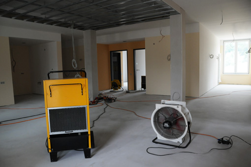 Durch eine zügige Bautrocknung wird die Trocknungszeit erheblich verkürzt und Schimmelbefall verhindert.